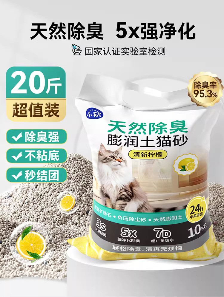 宠物猫砂20斤结团除臭猫砂低尘混合天然膨润土猫砂10kg猫咪